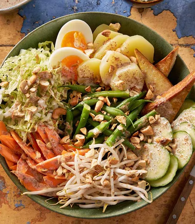 Indonesisk gado-gado-salat med sesamsaus