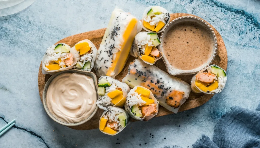 A) Sommerruller med grønnsaker og reker