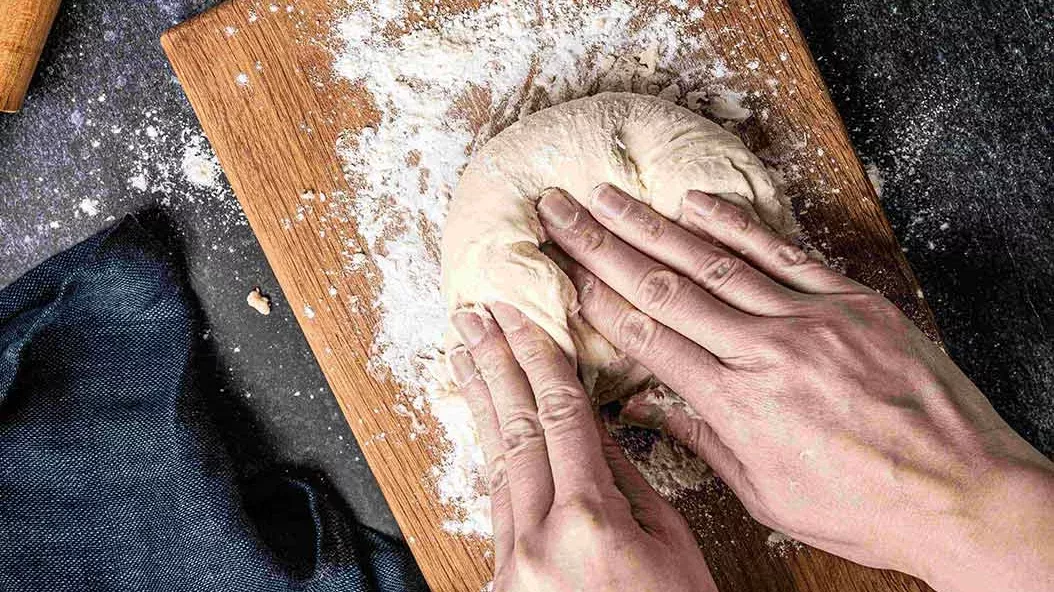 150 g mel – 1 ½ ts tørrgjær – 1 ts sukker – 100 dl warm water – 1 dl varmt vann