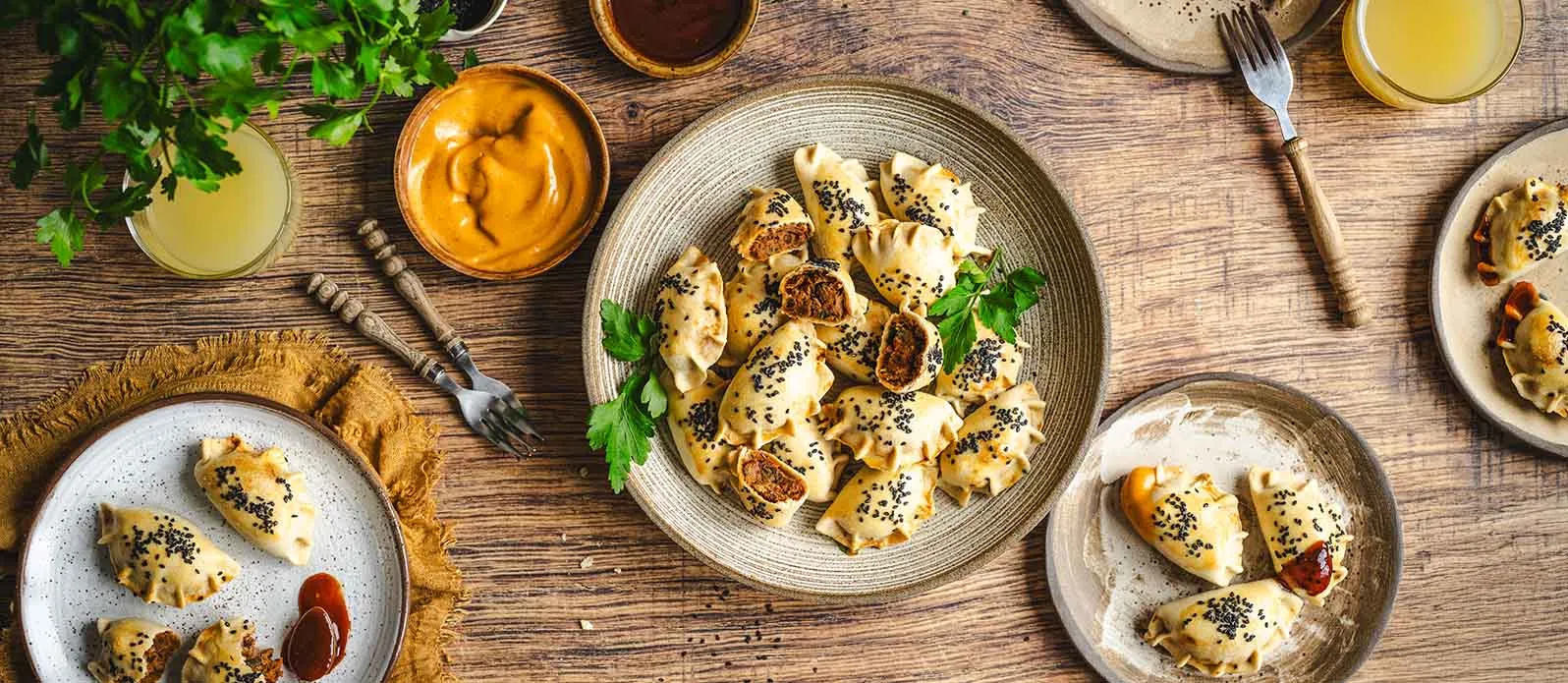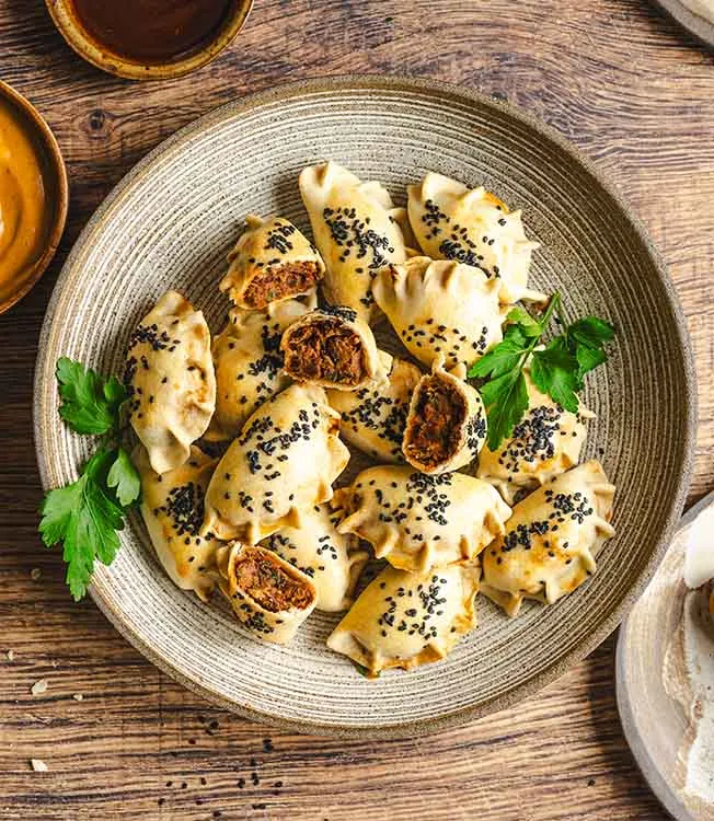Sprøbakte empanadas fylt med en smakfull miks av tunfisk, bønner og soltørkede tomater. Kikkoman Kimchi Chilisaus – både i fyllet og som dipp – sørger for en mild kryddersmak og ekstra dybde.