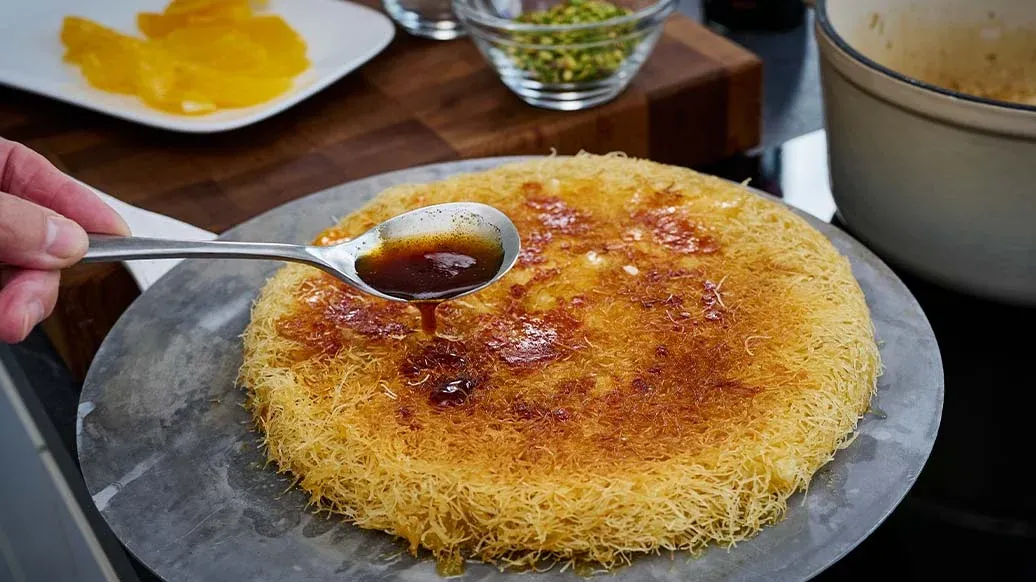 En klassisk tyrkisk dessert med sprø kadayif-deig og myk ost trukket i søt sirup. En skvett Kikkoman Soyasaus tilfører diskré umamidybde og sørger for en perfekt balansert, søt og salt godbit.