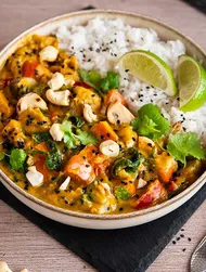 Tilsett de stekte grønnsakene, sopp og krydder i gryta etter at kjøttet har småkokt ca.1 time. La gryta trekke på svak varme i ytterligere 1,5 time. Server med potetmos, grønnsaker og hakket persille.