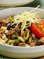Rør inn melet i litt vin og tilsett deretter resten av vinen i kjøttgryta. Tilsett kjøttbuljong og Kikkoman Soyasaus i gryta. Gi det et lite oppkok og senk varmen. La småkoke ca. 1 time