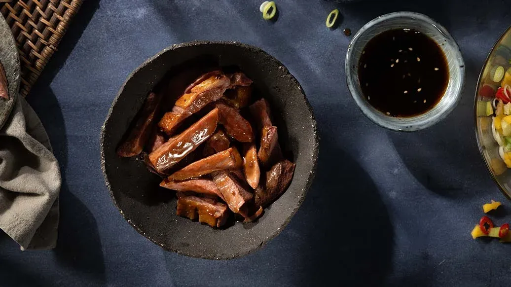 Klar for en ekte smakseksplosjon? Denne oppskriften kombinerer sprøstekt andebryst i teriyaki-BBQ-stil med en frisk og fruktig salat av mango og agurk. Chili og thaibasilikum setter prikken over i-en.