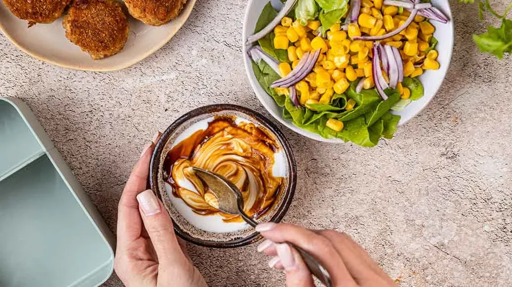 2 ss yoghurt naturell – 0,5 ts Kikkoman Naturlig Brygget Soyasaus